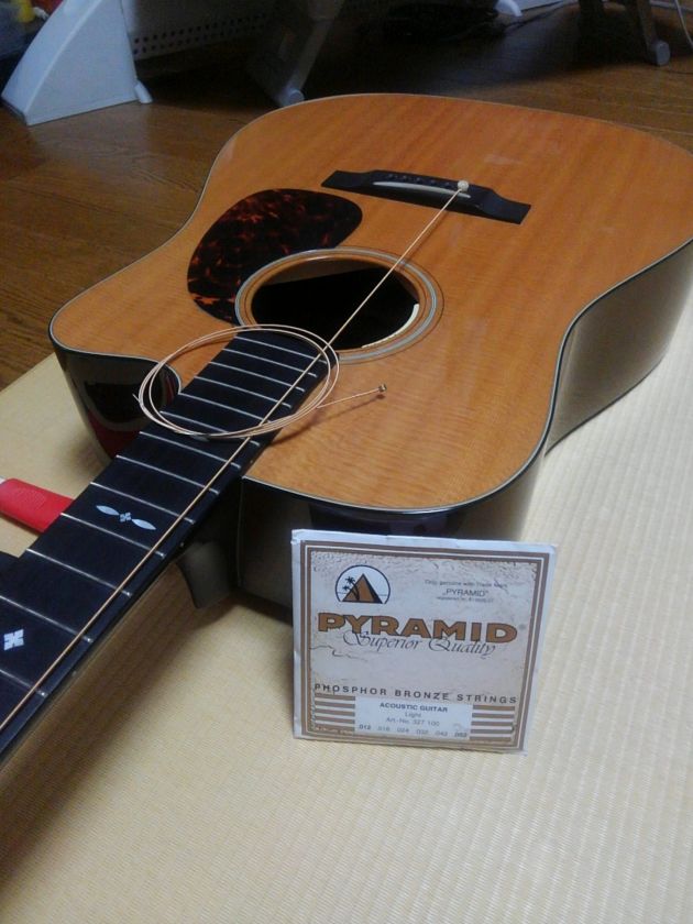 PYRAMID弦と行ってもストレート弦と違って普通に巻いて売っている弦ですが、何故かクセが少ない感じでしたね。張り終えて弾いて見ると新しい弦を張ったときのキラキラ感というかジャラジャラした感じの音が全くなくてある意味地味な感じ、かといって死んでるわけでも無い、不思議な音でした。