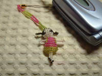 昨年の母の誕生日プレゼントにと、NHKの「おしゃれ工房」のテキストの定期購読をプレゼントしました。毎号、母の元に届くたびにメールか電話で「届きました、ありがとう。」の連絡が来ます。そして私も見せてもらいます。毎号、手作りやら、園芸やら、おしゃれやら、楽しくてためになる話題がもりだくさんです。今日、我が家に来てくれた母からもらったのは 携帯ストラップ。もちろん、おしゃれ工房のテキストを見て作ってくれたものでした。ビーズの可愛いお人形のストラップです。母にはいろいろ作りたいモノがたくさんあるようで、とても忙しそう。でもとても楽しそうな忙しさです。上手に私たちからのプレゼントを活用してくれていてとてもうれしく思いました。