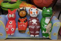 いらっしゃいませを言っているようなお人形達。 あれこれおもしろくて時間を忘れるようなお店で、夫には「もう行くよー」と言われる始末(^^;