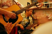 ゆうさんのギターにパーカッションとベースが加わると いつもの曲にさらに奥行きが出て 迫力が増してきます。