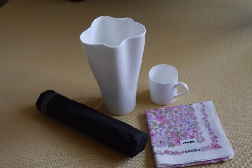 NOBさんもパッと開いてパッと閉じられる折りたたみ傘をゲットと、ソーサーの付いていないデミタスカップ。こういう、シンプルすぎるのが欲しかったのよね~。