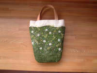 ばあちゃんちではお茶とお菓子を頂きながらなんてことのない、世間話。ここのことろ、なかなか実家へ足を伸ばすことも出来なかったので こんなひとときは久しぶり。母が用意してくれたのは 取れたてトマト、漬かりすぎてすっぱくなったキュウリの古漬け..これって好まない人もおられるようですが ちょっと「け出し」をして(水につけて塩辛さをぬいて) 生姜醤油で食べるとおいしいのですよ。夏にはこの酸味が食欲をそそるのです。それから、炭を花器に見立てたアイビーの小さな飾り、手作り小花模様のバッグ。そんなモノ達を用意してくれていました。小花模様のバッグは 「おしゃれ工房」のテキストで作ってくれたもので、まるで小花の咲きみだれる野原をそのまま切り取ってバッグにしてしまったみたいな、小花の刺繍が可愛らしいバッグです。見るからに 爽やかな...。白い綿のワンピースでも着て持ちたいバッグ。白いワンピース、買わなくちゃ(^^;)