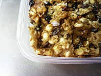 み〜ひゃん、思ったよりおいしかったですよ。私は特にクルミの香ばしさが好き〜。天板に広げるときに上にクッキングシートを広げてその上から押さえるとく手やへらなどにくっつかず広げることができるようです。また、画像に見える白いツブツブはハトムギのポン菓子なんです。ちょうどあったから試しに入れてみたのでした。