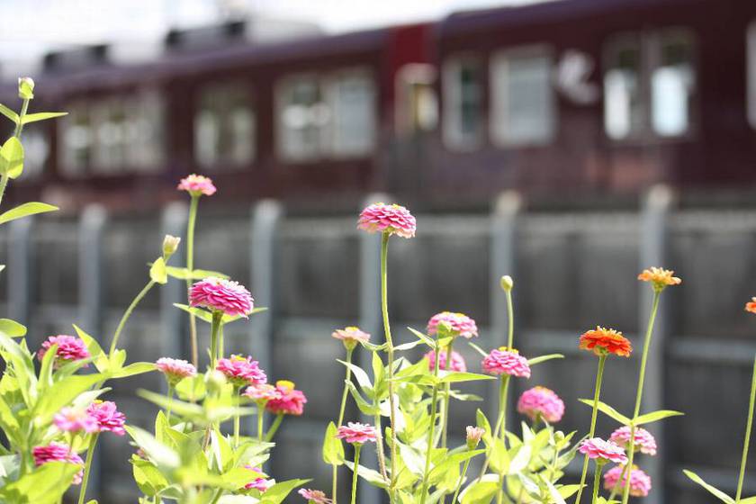 予想以上にニョキニョキ、背が高く育った百日草。 阪急電車からも見えているようです。 乗客の皆様にも楽しんでいただけていたら嬉しいですね。