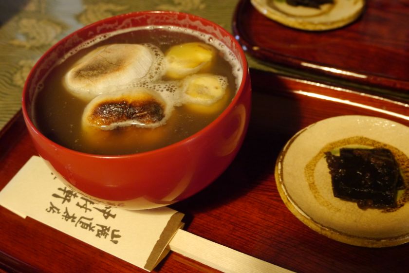 注文したのは栗ぜんざい。季節限定です。 栗がホクホク、白いお餅と粟餅とを入れてもらいました。(お餅は選べます)口の中がちょっと甘くなってきたら、塩昆布で口直し。 裏切らないおいしさでした。
