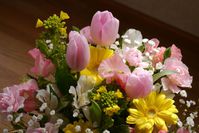 春ちゃんと成ちゃんとそれぞれにひとつずつ、イメージに合わせた、アレンジメントフラワーをお供えくださいました。