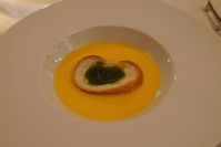 ホタテとスズキのチャウダー仕立て。 クリームのまろやかさだけじゃなくて、マヨネーズみたいなアクセントはなんだったんだろう。