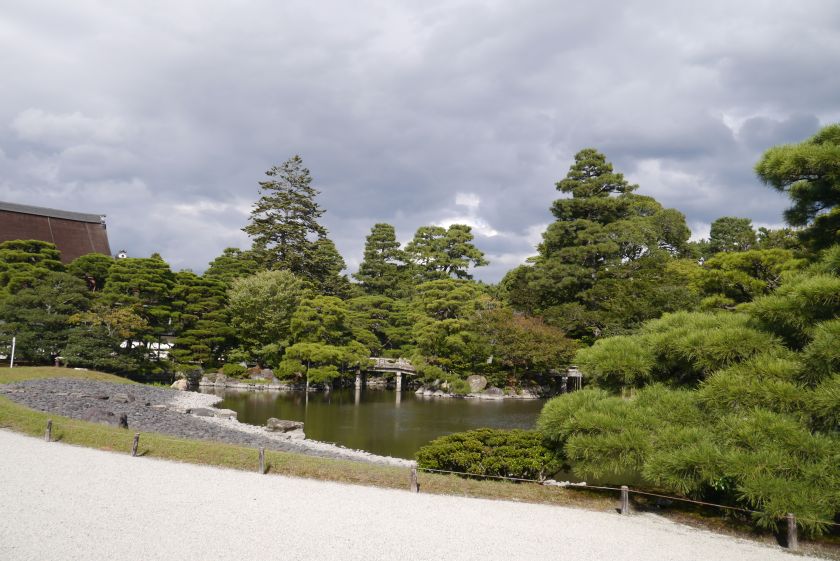御池庭。 枯れ葉1つ落ちていないくらいに美しく保たれています。 たくさんの建築物があるのですが、屋根の檜皮葺はそれぞれ30年に一度、25年ほどかけて吹き替えられるのだそうです!