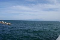 海の向こうから向こう側の鳥居をくぐり、こちらの鳥居を神様が通られるんですね。向こうの鳥居、見えるかな。