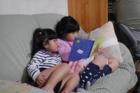 この女の子はひまわりフェスタで わたなべゆうさんの演奏を聴いたことがあって、しかも絵本が好きだというので 「マクの約束」のDVDを流しながら 絵本を渡してあげたら すっかり夢中♪