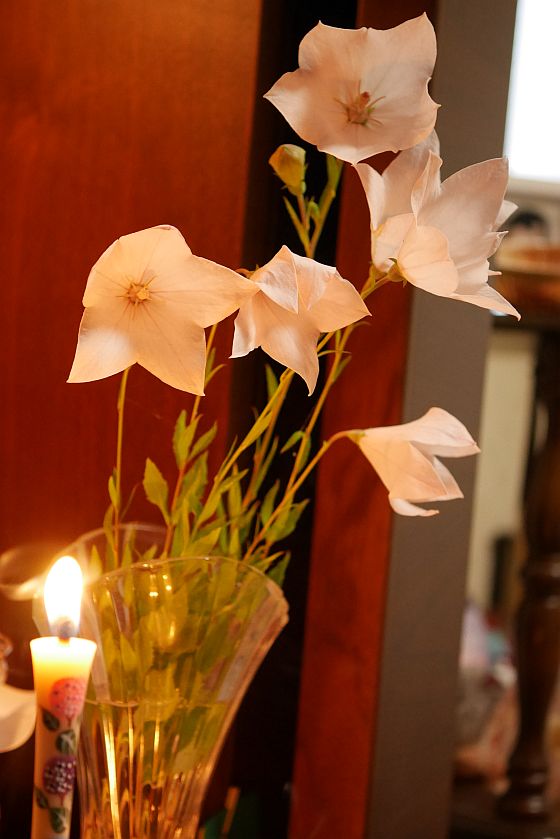 パパが咲かせてくれた桔梗もお供えしました。